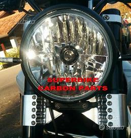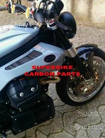 PROGETTIAMO E REALIZZIAMO AVANTRENI SPECIALI PER QUALSIASI MOTO. AVANTRENO COMPLETO PER GUZZI GRISO. COSTITUITO DA: - FORCELLE SPECIALI OHLINS OPPURE MARZOCCHI (oppure forcelle fornite dal cliente) - PIASTRE DI STERZO PROTOTIPATE E RICAVATE DAL PIENO CON MACCHINARI A CONTROLLO NEMERICO.Il kit piastre è costituito da piastra di sterzo inferiore con asse canotto e piastra di sterzo superiore. Possiamo realizzarle per mantenere i raiser originali o allestirle con raiser speciali o con semimanubri racing sportivi anch'essi ricavati dal pieno. Per il montaggio delle piastre si utilizzano boccole e cuscinetti originali. Possiamo realizzare cave di alleggerimento e altre lavorazioni meccaniche su richiesta. Un prodotto rivoluzionario per efficacia e risorse tecniche impiegate. Possibilità di scegliere qualsiasi colore per l'anodizzazione. Le piastre di sterzo sono progettate appositamente per migliorare il feeling con l'avantreno eliminando il chattering rendendo la moto piu' stabile in inserimento curva e percorrenza. La lega speciale utilizzata è testata in pista nei principali campionati internazionali e studiata appositamente per assorbire le sollecitazioni e permettere alle sospensioni di lavorare molto meglio. Realizzate con Off set standard oppure speciale o regolabile a richiesta. Se richiesto replichiamo o progettiamo attacchi e supporti per telaietto, quadro strumenti, blocco accensione, blocca sterzo, faro etc... presenti sulle piastre originali e non. Il cliente può scegliere qualsiasi tipologia, forma e lavorazione meccanica per il progetto delle piastre di sterzo, entro i limiti imposti dalla quote della moto stessa. Il cliente può altresì prendere spunto dai nostri lavori precedentemente effettuati. - Parafango in carbonio - Kit di montaggio Optional disponibili: piedini radiali ricavati dal pieno, pinze radiali, cerchi speciali. Per informazioni orario continuato 8-18 dal lunedì al venerdi. Chiuso sabato, domenica e festivi.