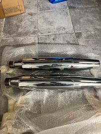 Vendo coppia di marmitte originali cromate per Dyna Street Bob motore 103 del 2015 Scarichi usati qualche miglia si kilometri non si più. Praticamente nuovi, senza graffi ne’ ammaccature, cromatura perfetta.