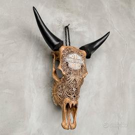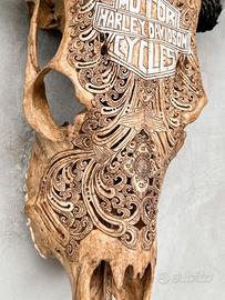 Harley-Davidson Scultura Skull Autentico Di Bos Taurus Cesellato a mano.