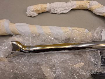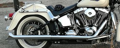 Cedo per passaggio a scarico più silenzioso, eccezionale scarico prestazionale completo della Vans&Hines con terminali Fishtail. Completo delle staffe necessarie al montaggio su softail. Io lo montavo sulla mia Heritage 2014, le foto allegate sono dello scarico in oggetto. Condizioni molto buone, qualche leggero normale segno di utilizzo, Importante mai caduto, mai grattate. NO BOTTE. Ricordo che questi scarichi sono fuori produzione. Non più acquistabili da nuovi. Indispensabili per dare un tocco chicano style. Se li trovo, a chi li acquista regalo i buffle da montare internamente per attutire un pò il sound (pagati nuovi quasi 100 euro ed usati pochi km). Preferisco scambio a mano per visionare articolo e anche per ingombro dell'oggetto. Posso predisporre una spedizione cercando di imballare nel migliore dei modi, ma la merce viaggia a rischio Vostro. Cortesemente no perditempo. grazie