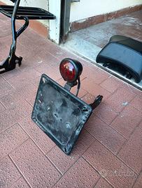vendo in blocco i seguenti accessori: portatarga laterale con luce posizione e freno; parafango posteriore con fender e frecce mini bullet nere; frecce anteriori mini bullet cromate ruota da 16 con pneumatico dunlop da 200; sissybar con portapacchi; sella posteriore originale Harley Davidson sundowner; copri parafango artigianale Carota. tutto visto e piaciuto, ideale per trasformazione posteriore. softail slim breakout dyna sportster