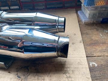 Scarichi originali per Harley Davidson modelli softail, sono per modelli softail 1450 ma ad entrambi è stata tagliata la parte iniziale del collettore per montarli su softail EVO 1340.