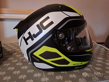 Vendo casco HJC Rpha 11 Saravo MC4HSF taglia L, completo di sacca e visiera Fume', casco utilizzato non più di 5 volte, sempre igienizzato e riposto nella sacca, nessun segno o graffio ed anche l'imbottitura interna è paragonabile al nuovo.