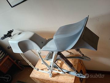 Serbatoio, codino e portabatteria in vetroresina per Honda 500/550 Four. Nuovi, mai usati. Trattamento interno serbatoio con C12 epossidico. Tappo a vite in alluminio.