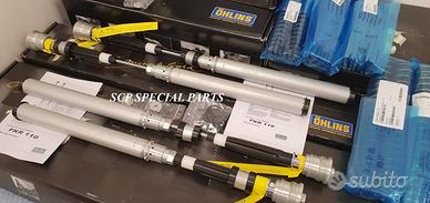 SOSPENSIONI UFFICIALI REPARTO CORSE OHLINS. - Set cartucce forcelle pressurizzate OHLINS codice FKR 110 FKR110 Cartucce modello TTX25 pressurizzate con taratura ufficiale Campionato del mondo supersport, corredate da 3 set di molle (9n/mm, 95n/mm, 10n/mm) Disponibili anche ammortizzatori pressurizzati OHLINS TTX GP codice HO469 HO 469 Ammortizzartori con taratura ufficiale Campionato del mondo supersport c45r7 con possibilità di interasse variabile -3mm rispetto alle versioni non da gara, pressurizzati con precarico idraulico, e interasse variabile SOSPENSIONI FORNITI CON TARATURA PERSONALIZZATA Le cartucce ohlins FKR 110 sono specifiche per HONDA CBR 600 RR 2013 - 2018 L'ammortizzatore ohlins HO 469 è specifico per HONDA CBR 600 RR 2007 - 2018