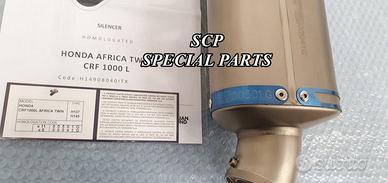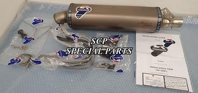 Dalla collaborazione di Termignoni con il Team HRC prende spunto la realizzazione del silenziatore dedicato alla Honda CRF 1000 L Africa Twin da oggi anche per la versione 2018 - 2020. Il silenziatore omologato EURO 4, è caratterizzato da una camicia realizzata in Titanio con lo storico logo metallico rivettato. A corredo del kit è stato progettato anche il paracalore in fibra di Carbonio per rendere ancora più unica la tua Honda. Questa combinazione offre un'importante riduzione di peso (2,47 chilogrammi rispetto ai 4,8 del silenziatore di serie) ed un costante incremento di potenza (+ 2,23 cv a 4.400 giri/min) e coppia (+ 2,67 Nm a 2.850 giri/min) in gran parte del range operativo del motore. come optional disponibili collettori completi in titanio oppure inox e centralina elettronica termignoni con mappatura dedicata.