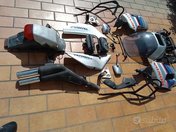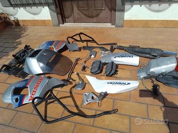 Ricambi per Honda transalp prima serie anno 1988, i pezzi disponibili sono in elenco e sono in buono stato nonostante l'età.presenti due strumentazioni. Visibili in zona Sacrofano,Roma nord(Flaminia) ritiro in luogo,non spedisco. Ricambi disponibili : Cupolino +parabrezza 180 € 2 strumentazioni. 50 € cadauna barra supporto radiatori 10€ Fiancatine sotto sella. 60 € Faro anteriore con telaietto 60€ Plastiche copriradiatori 20€ Frecce posteriori 10€ Carena sotto sella 30 € Faro+portatarga 40€ Parafango posteriore 20€ Specchietti 20€ Pedane passeggero 40€ Copri scarico 10€ Terminale scarico 70€ Coppia paracolpi telaio 70€
