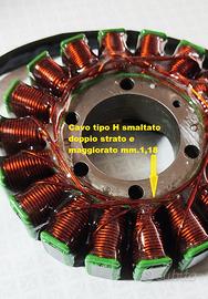 Il nostro statore e' avvolto con filo di rame tipo OZY-2-H180° di mm. 1,8 a doppio strato di smalto in piu' doppio strato di resina isolante resistente alle alte temperature che lo statore deve sopportare, ad un costo di meno della meta' dell'originale.