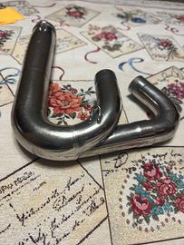 Collettore Akrapovic per Husqvarna 250/450/510 in titanio, appena restaurato e lucidato, alla prima accensione prende il colore tipico del titanio.