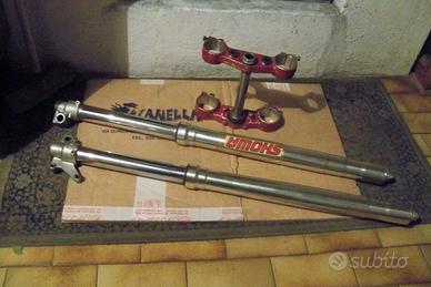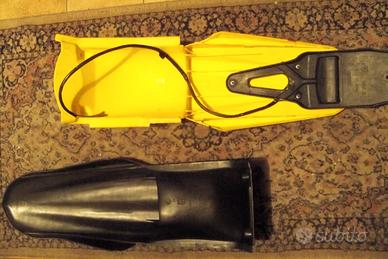 Ciao, dall'esclusiva sella x 510/350 anni '90/3; molla NUOVA Ohlins '97/4 x suddetto mono, oltre che valida x Showa '94/2003 - 75/80kg.; 2° unità unione collettori '94/99 x doppio silenziatore; para post. cross Husqvarna: yellow con 3 fori e porta targa, mentre black ancora 'vergine', validi x serie 570 con 'triangolo' sella stretto; forcelle Showa 45 in ottimo stato, con doppia pinza completa di cuscinetto; copri sella NUOVI con doppia scelta: modello alcantara liscia o punteggiata x miglior tenuta od anti acqua! vi sono inoltre doppio triangolo sella: largo '94/2001 o stretto '99/2004 x 410/610 doppio, o 570/610 mono silenziatore! oltre ad altri para ant. & post., attacco & pinza, tubo freno, forcellone Verlicchi '94/9 e remake 2004, mono showa 320mm. '94/2001/4, ed altro, con foto x interessati; saluti.