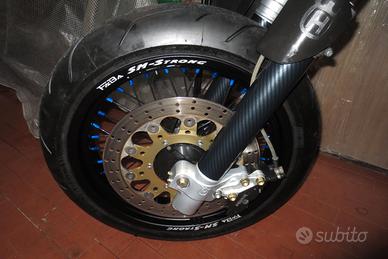 Vendo ricambi husqvarna sm610, husqvarna sms610, husqvarna motard, husqvarna 570, husqvarna sm 610, con 23000km completamente restaurata da rodare ricambi vari : ruote complete nuove FABA SM STRONG con BARTUBLESS gommate DUNLOP SPORTS SMART, motore completo revisionato da rodare con statore accensione, forcelle complete revisionate, mono ammortizzatore revisionato, impianti freno anteriore e posteriore revisionati con pastiglie nuove, kit plastiche serbatoio e mascherina porta faro e sella, scarico completo originale perfetto, radiatori completi con elettro ventola, scatola filtro completa con filtro nuovo, batteria nuova, impianto elettrico completo con interruttori perfetto, telaio TARGATO con telaietto verniciati a polvere, pedane poggia piede, Kit plastiche originali nere completo con mascherina porta faro, per info e prezzo SOLO CONTATTI TELEFONICI AL 370 3622368,NON RISPONDO A MAIL O SMS.