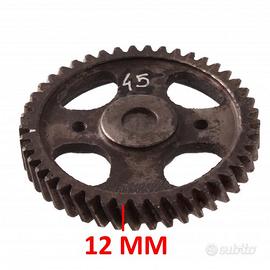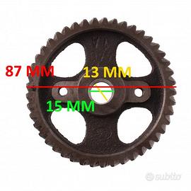 (R.18130) Vendo ingranaggio motore usato da 45 denti probabilmente per moto Gilera vintage marchiato 4/0 1A con diametro interno cono da 15 a 13 mm e diametro esterno di 87 mm con spessore modulo 12 mm , per misure vedere foto
