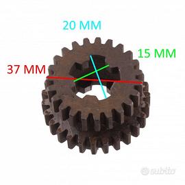 (R.19988) Vendo ingranaggio doppio da 23 e 27 denti diritti nuovo per Mi-Val 125 cc GS - NS - GL - GSA - GSR 2 tempi 4 velocità , per misure con applicazioni ed esploso vedere foto