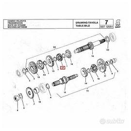 (R.12788) Vendo ingranaggio da 19 denti terza velocita su albero primario nuovo per Cagiva SST 125 cc originale epoca con codice 800022398 o 22398 , per misure ed esploso vedere foto