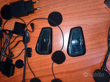 Per passaggio ad altro dispositivo vendo interfono doppio in oggetto, nella sua confezione originale e con tutti gli accessori originali; gli interfoni sono perfettamente funzionanti, smontati dai caschi e messi in vendita. Come si evince dalle foto, mostrano segni di usura come è normale che sia, in particolare le spugne sono deteriorate, ma non pregiudicano minimamente funzionalità e qualità audio; possono essere rimpiazzate con spesa irrisoria anche se non è necessario in quanto nascosti dietro le spugne dei caschi.