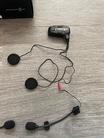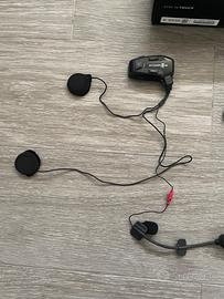 Il kit comprende DUE interfoni completi di cuffie, microfoni, supporti per il montaggio sui caschi e cavo di ricarica, tutto all'interno della scatola originale. Come potete vedere dalle foto, è tutto in condizioni perfette e pronto all'uso.