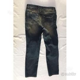 pantaloni da moto Jeans Kevlar con protezioni ginocchia omologate CE 1621-1 e predisposizione per protezioni Zero sui fianchi, realizzato in tessuto Denim cotone elasticizzato. I rinforzi in tessuto 100% TWARON balistico lo rendono ideale per l'utilizzo motociclistico, la tasca posteriore con patta e chiusura con bottone a pressione, la costruzione anatomica delle ginocchia e il tessuto elasticizzato lo rendono adatto all'utilizzo di tutti i giorni per chi cerca un pantalone che offra protezione ma, allo stesso tempo, confort e leggerezza.