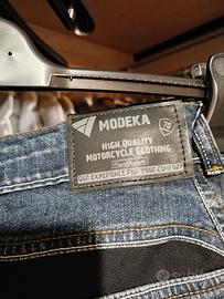 Vendo jeans moto nuovi (taglia errata)con protezioni omologate e prese d'aria con cerniera sui fianchi, marca MODEKA tg 32(46)
