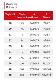 CARATTERISTICHE: L'area interna delle cosce è realizzata in un materiale flessibile e sono presenti tre tasche frontali e due tasche posteriori con barriera interna anti scalzata