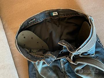 Vendo bellissimo Jeans per moto modello “Caferacer” blue, marca PMJ. Incluse protezioni ginocchia e anche che ho comprato separatamente. Taglia 32, corrosponde ad una 46. Oggetto pari al nuovo.
