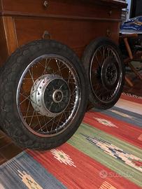 Ruota anteriore r posteriorw perfette con ancora coperture originali made japan perfette pari al nuovo,inoltre ho forcella anteriore e ammortizzatore anteriore del Kawasaki 500/750.