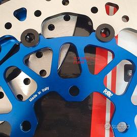 Dischi freno RM2 SUPERBIKE made in italy FULL FLOTTANTI MAGGIORAZIONE A 330MM PER MOLTISSIMI MODELLI KAWASAKI. vuoi aumentare la potenza frenante? aumenta il diametro dei tuoi dischi con i superlativi RM2! DIAMETRO 330 MM SPESSORE 6 MM FULL FLOTTANTI specifici per: KAWASAKI 1000 ZX-10R ABS 2016-2023 (versioni con ruote fuse di serie) KAWASAKI 1000 ZX-10R KRT REPLICA 2019-2020 (versioni con ruote fuse di serie) KAWASAKI 1000 ZX-10RR ABS 2021-2023 (versioni con ruote fuse di serie) Upgrade (maggiorazione) a 330mm per i seguenti modelli: NINJA ZX-10R 04-05, 06-07, 08-10, 11-15 NINJA ZX-6R 07-08, 09-16 NINJA ZX-6R 636 13-17 NINJA ZX-6R/RR 05-06 ER-6F 06-08, 09-11, 12-16 ER-6N 06-08, 09-11, 12-16 GTR 1400 Versys 1000 12-14, 15-16, 17-18, 19> Versys 1000 SE 2019> Versys 650 07-09, 10-14 Z1000 07-09, 10-13, 14-16, 17-20 Z1000 SX 11-13, 14-16, 17-19 Z750 07-12 Z750 R 11-12 Z800 Z800 E Z800 E ABS ZZR 1400 06-08, 12-15, 16-20 ZZR 1400 ABS 06-11 ZZR 1400 Performance Sport - per le maggiorazioni sono corredati di specifico kit distanziali per le pinze - intercambiabili ai dischi di serie, possono essere utilizzati con pinze freno originali oppure Brembo - UNICI ad avere spessore 6 mm che insieme al diametro di ben 330mm GARANTISCE una potenza frenante enorme e previene il fastidioso fenomeno di fading, ovvero quando all'aumentare delle temperature dei dischi e il conseguente aumento della temperatura di tutto l impianto frenante la pompa freno diventa spugnosa e si "allunga" la corsa della stessa - i dischi sono full flottanti quindi garantiscono un perfetto accoppiamento con la pastiglia freno per una frenata immediata senza ritardi ed efficace - piu leggeri dei dischi racing di altri produttori, a tutto beneficio della maneggevolezza dell'avantreno della moto - mozzo in lega alleggerita anodizzata blu - pista frenante racing con speciale lavorazione a cuspide per un perfetto utilizzo della pastiglia freno