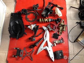 Vendo ricambi usati in per Kawasaki er 6n del 2005 con soli 12.363 km di utilizzo della moto che vedete in foto prima dello smontaggio definitivo, già controllati prima della vendita dai nostri operatori, ricambi uguali per tutti i modelli dal 2005 al 2008 spedizioni in tutta italia con corriere espresso 24h, un giorno e sono da voi. Alcuni esempi e costi dei ricambi rimasti: Asse ruota posteriore 30€ Blocco motore Viene venduto SOLO a pezzi: Cambio completo 200€ Frizione completa 100€ Statore 120€ Regolatore di tensione 50€ Cavalletto 30€ Centralina motore 150€ Centralina servizi 80€ Cerchio ant (VENDUTO) Cerchio post 150€ Collettore scarico 60€ Comando frizione e leva 40€ Corpo farfallato 120€ Devioluci SX 40€, dx 40€ Dischi ant 160€, post 40€ Faro (VENDUTO) Forcellone post 60€ Ingr avv volano e ruota libera 150€ Kit catena corona e pignone 50€ Kit serrature: quadro, tappo benzina e sottosella 140€ Mono amm post 100€ Motorino di avviamento 100€ Pedale freno 30€ Pinze freno 50€ cadauna Piastre forcella 150€ Pompa benzina 120€ Pompa freno 60€ Portatarga regolabile 30€ Radiatore e sella VENDUti Serbatoio ammaccato 50€ Silenziatore 100€ Sottosella/portabatteria 40€ Strumentazione (VENDUTO) Supporto pedane ant sx 70€ Telaietto faro (VENDUTO) Ventola radiatore 50€ sensori vari ecc ECC ECC..Disponibili ricambi per : yamaha r1 modello 2007 e 2001, r6 dal 99 al 2007, hornet 900, hornet 600, CBR 1000 RR 04 05, cbr 600 rr 04 al 2007 cbr 600 f 2002, sv 650 dal 99/2003, cbr 900 dal 93 al 98, beverly 500 fz8 fz1, multistrada 1200, monster 620 696 750 900, crf 450 2002/12 crf 250, sv 650, hypermotard 796, tdm 900, ktm 450 530, z750 z900, bmw f800, transalp 700.