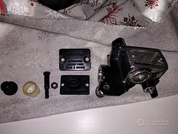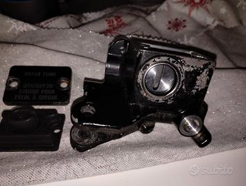 Pompa freno anteriore smontata da un Kawasaki KLR 600 del 1986. Completamente pulita con leva nuova della JMP, Kit di revisione della pompa della TOURMAX (made in Japan), 2 bulloni nuovi originali Kawasaki per coperchio vaschetta della pompa. Venduto così com'è. Per eventuali Info scrivete.