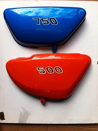 -Norton Commando 750 Roadster (1972) fiancatine originali in metallo blue elettrico. Adesivi e verniciatura tutto perfetto. Euro 150