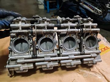 carburatori superbike originali fcr kehin valvola piatta (39mm originali modello k), cupolino comprensivo di plexiglasse telaietto anteriore con carene laterali zxr 750 originali (modello h colorazione k1), piastre forcelle complete racing, motore completo di motorino e alternatore (modello j), semimanubri, strumentazione e telaio anteriore porta fari (modello h), dischi anteriori originali, telaietto posteriore nero, info e prezzi tramite contatto