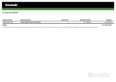Vendo Serbatoio per moto Kawasaki Z1000 del 2017-2020. Condizioni ottime, senza ammaccature o perdite (l'unico difetto è visibile nelle foto). Prezzo: 500€. Disponibile per consegna a mano o spedizione. Contattami per ulteriori informazioni o per acquistare. Descrizione: TANK-COMP-FUEL,M.F.S.BLACK Codice: 51001-0791-739