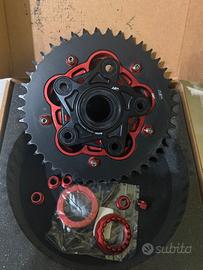 Vendo Kit corona, porta corona e dadi della AEM Factory, utilizzato per 200 km e poi smontato causa vendita moto. Monta su tutti i modelli di hypermotard (1100,796,821,939,950).