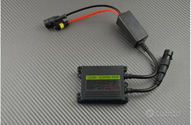 Kit xeno 12V , 35W (migliore qualità per la centralina) composto da una lampadina xeno H4, di una centralina a corrente alternativa, di un cavo e una luce led.