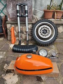 vendo kit per trasformazione moto cafè Racer scrambler special,anche separatamente:forcella steli rovesciati sella serbatoio cerchio con gomma 17 faro stop filtro a cono info prezzi anche wapp