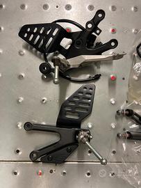 Vendo kit completo originale pedane principali + pedane passeggero + cavalletto + leva e asta cambio con sensore elettronico per Yamaha R6 2017 2018 2019 2020 2021 2022 2023 2024 . Tutto smontato da moto nuova, mai utilizzato. Vendo anche separatamente .