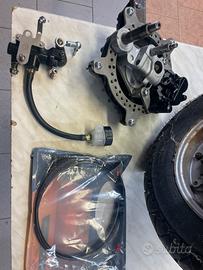 Disponibile kit disco freno completo di pompa al manubrio con serbatoio olio, pasticche nuove, tubo nero con 4 raccordi diversi tutto nuovo, comprato montato e mai usato….