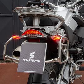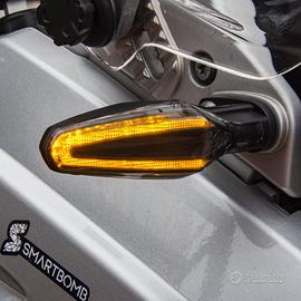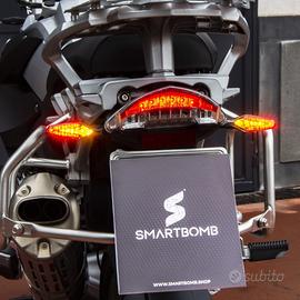 Come montare in video il Kit 4 Frecce LED Dynamic https://youtu.be/0XJVwqQyqGw Abbiamo realizzato un kit completo di 4 frecce LED Dynamic per BMW R1200GS 2004-2013, compatibile con versioni Bialbero e Monoalbero. Grazie a un accurato lavoro di progettazione e all’integrazione con le centraline Smartbomb KS, questo kit consente di sostituire le frecce originali con una installazione semplice e plug & play, senza alcuna modifica all’impianto elettrico né necessità di codifiche. Le frecce funzionano come gli indicatori direzionali BMW LED Dynamic di ultima generazione: Anteriori: funzione combinata di indicatore direzionale + luce di posizione fissa. Posteriori: funzione combinata di indicatore direzionale + luce stop fissa, proprio come le frecce originali BMW Motorrad Dynamic. Come si montano le frecce LED Smartbomb per BMW R1200GS K25 (2004-2013) Primo Step Il Kit 4 Frecce LED Dynamic R1200GS 04-13 Bialbero/Monoalbero è stato progettato e testato per offrire un sistema completo, compatibile con il canbus e senza errori a cruscotto. Le centraline Smartbomb KS assicurano il corretto funzionamento delle frecce anteriori: basta collegarle ai connettori originali dell’impianto e al positivo sottochiave tramite il cavo rosso presente nelle centraline. Secondo Step Le frecce posteriori svolgono la doppia funzione di luce di posizione rossa + indicatore direzionale. Per il montaggio: collega ciascuna freccia al connettore originale in sostituzione di quella di serie; per attivare la luce stop fissa, collega il cavo grigio (presente sugli indicatori) al cavo che alimenta lo stop posteriore della tua moto. A seconda del modello, individua il cavo corretto e realizza il collegamento con un rubacorrente o metodo equivalente. Contenuto del kit: 4 Indicatori direzionali LED 2 Centraline Smartbomb KS 2 Spessori per il montaggio delle frecce posteriori Compatibilità: BMW R1200GS 2004-2013 Monoalbero e Bialbero (K25)