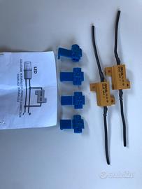 Il kit comprende una coppia di frecce e una luce targa led e le due resistenze + morsetti + istruzioni di montaggio.