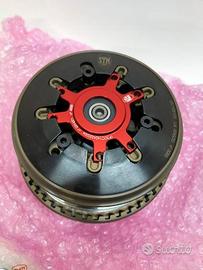Si tratta di una frizione STM EVO-SBK, realizzata in alluminio dal pieno con campana e pacco dischi da 48 denti; i dischi sono 9 condotti e 9 guarniti con diametro di 138 mm.