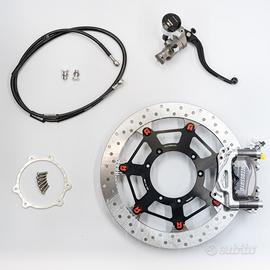 Kit impianto frenante radiale accossato completamente ideato e sviluppato grazie all'esperienza del nostro team maturata negli anni delle competizioni Supermoto.