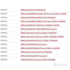 Codice ricambio: 21972 (R.21972) Vendo serie molle frizione Malossi 297454 nuove per scooter vari con motore Piaggio tipo : Aprilia Mojito 50 cc - Scarabeo 50 cc - Sportcity 50 cc - SR 50 cc - SXR 50 cc , Cagiva City 50 cc , Derby GP1 50 cc - Variant 50 cc , Gilera Runner 50 cc - DNA 50 cc - ICE 50 cc - Storm 50 cc - Stalker 50 cc - Typhoon 50 cc , Honda SFX 50 cc - SGX 50 cc - SXR 50 cc - Shadow 50 cc - Vision 50 cc , Kymco K 50 cc - CX 50 cc - Dink 50 cc - DJ 50 cc - Heroism 50 cc - Sniper 50 cc , Malaguti Centro 50 cc , MBK Booster 50 cc , Piaggio NRG 50 cc - Liberty 50 cc - NTT 50 cc - Sfera 50 cc - Zip 50 cc - Vespa ET2 50 cc - Vespa LX 50 cc - Vespa Primavera 50 cc - Vespa S 50 cc - Vespa Sprint 50 cc , Peugeot Buxy 50 cc - Elyseo 50 cc - Rapido 50 cc -Speedfight 50 cc - Speedake 50 cc - Squab 50 cc , Yamaha BW'S 50 cc , per applicazioni vedere foto