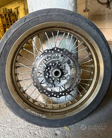Vendo kit motard composto da: cerchi rexfelgen oro (prodotti da Excel Takasago), disco anteriore 320mm BRAKING, staffa spostapinza inclusa. Era montato su kawasaki kx 125, ma compatibili con moto del settore. Prezzo trattabile.