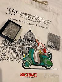 Placca toppa adesivo e sacca del 35 raduno internazionale registro storico vespa Roma