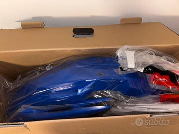 Vendo kit plastiche Yz 125 2017 Piatta nuova Convogliatori anteriori in buono stato, con grafica originale della moto Convogliatori posteriori leggermente rovinati Parafango anteriore in buono stato Codino in ottimo stato con grafica originale