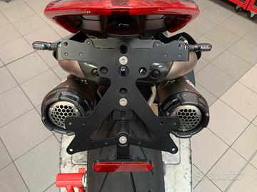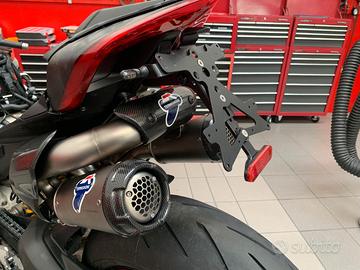 Kit portatarga Rizoma completo di luce targa led e frecce nano a led. Adatto per Ducati Panigale V4 con scarico Termignoni D200 modello alto.