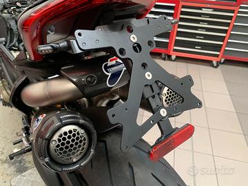 Kit portatarga Rizoma con luce targa led e frecce nano led adatto per Ducati Panigale V4 con scarico alto Termignoni modello D200. Ricambio come nuovo. Escluse spese di spedizione.