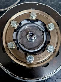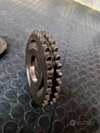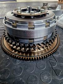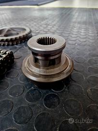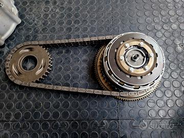 PACCO FRIZIONE + COMPENSATORE, CORONE A INGRANAGGI + CATENA + PIGNONE DENTI DOPPI E ACCOPPIAMENTO
