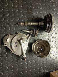 Vendo componenti vari trasmissione cambio per vespa 3 marce smallframe. Tutti componenti Piaggio NOS in perfetto stato. - Primaria 18/67 pignone e corona; - Cambio 3 marce ( albero ruota, 3 ingranaggi, cluster) millerighe e sedie chiavetta perfetti; - coperchio frizione completo di leva; Prezzo per tutto il kit. Altre foto a richiesta.
