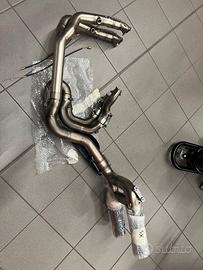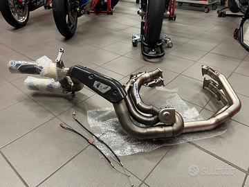 Kit scarico completo nuovo Termignoni con valvola di scarico SBK e doppi finali modello piccolo nero. Incluso nel kit i cavi dedicati per Panigale V4 SBK F23-F25. Cod. articolo D22810231T.
