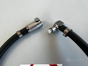 Kit sgancio rapido benzina completo di tubi con connettori in PVC originali Ducati adatto per Ducati Panigale V4 2025 -->. Kit composto da: N.2 tubi benzina, connettore CPC 90° ottone cromato, connettore CPC ottone cromato dritto, N.4 fascette Oeticker, N.2 connettori originali Ducati Pvc cod. tubo 59029492A. Escluse spese di spedizione.